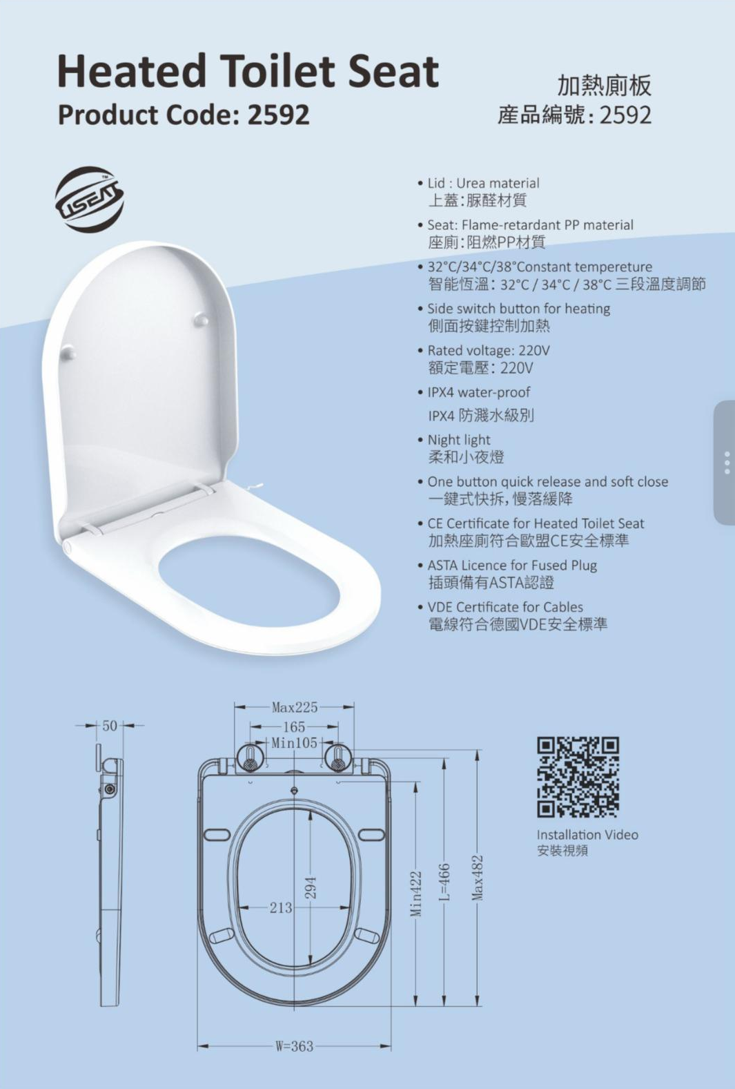 USEAT 2592 加熱廁板 智能廁板 電廁板 (U形款) 行貨一年保養